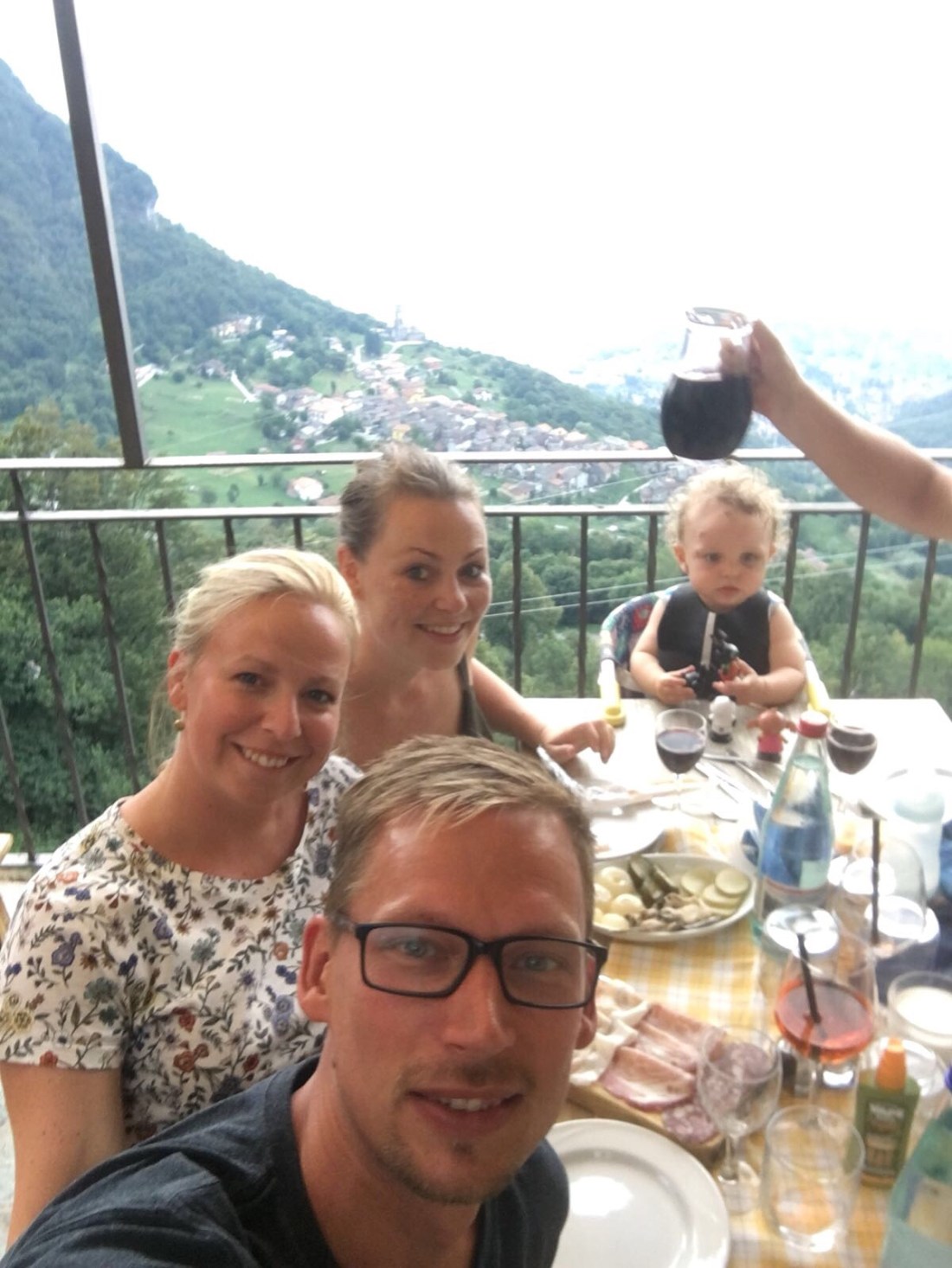 Det här sista stället vi bodde på hade, som ni redan förstått, en fantastisk utsikt, en trevlig restaurang och dessutom bra familjerum. Nu var Nina&Peter snälla så vi fick det stora rummet, men här kunde man verkligen bott även med större barn. Ett stort sovloft med madrasser och en dubbelsäng där nere. Dessutom gott om plats för spjälsäng👍🏻👍🏻 mindre bra var getingboet precis utanför dörren. Vår värd gjorde sitt bästa för att få bukt med dem, men kändes mest som de blev mer irriterade😬 Vi klarade oss från stick, men flyttade snabbt bort bord och stolar till en annan uteplats.