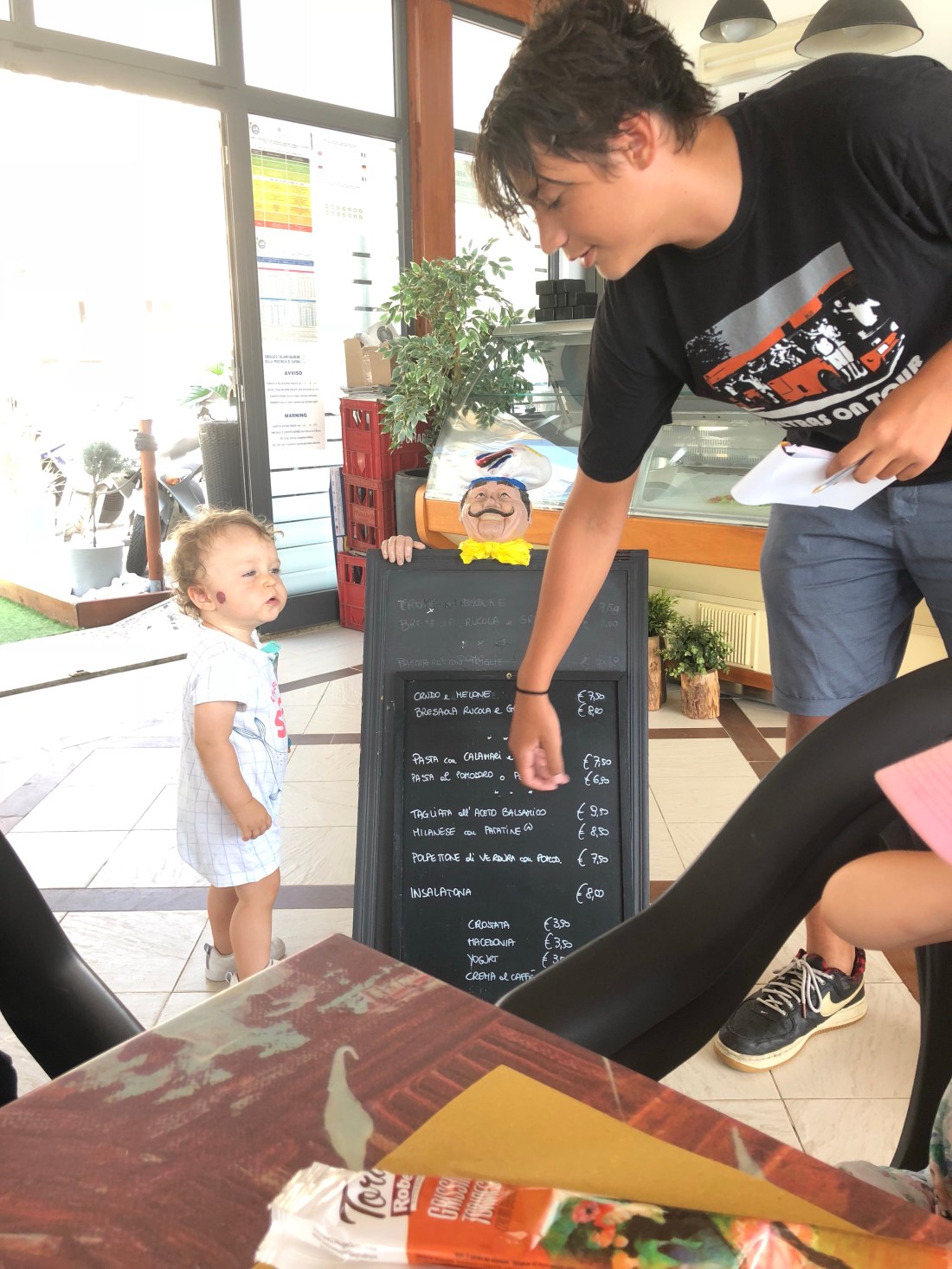 Det är barnens första besök i Italien och det allra första stoppet blev för lunch vid en liten sjö. Tummen upp för maten från båda barnen. Tummen ner från Lollo för den väldigt pratglade italienaren som serverade oss. Vitt skilda samtalsämnen under hela timmen vi var där, och vi förstod förvånansvärt nog en hel del. Tänk om det vore italienska man skulle lära sig istället😜