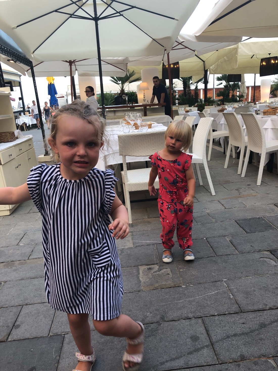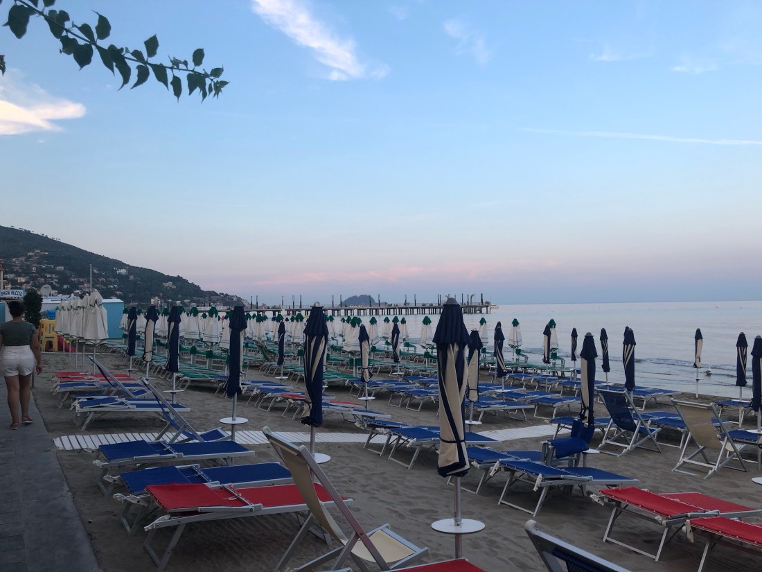 Gårdagskvällens middagsutflykt gick till Alassio, den närmsta större staden vid havet. Med fokus på att det skulle vara roligt för barnen inledde vi med lekplats och karusell. En självklar höjdare😄