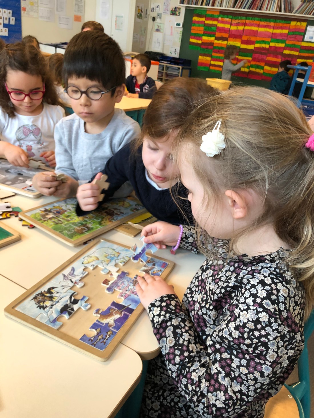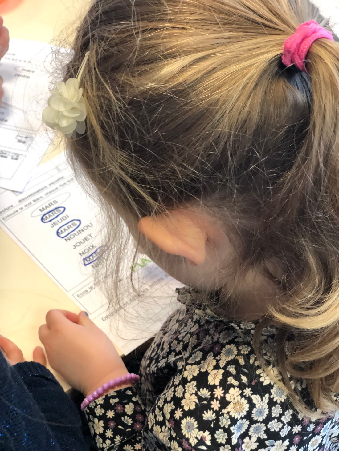 Och sedan delades de in i sina vanliga grupper, så att två grupper fick jobba och de andra två ha fri lek. Och sedan byte. Idag handlade det om månaden mars, så på pappret var det uppgifter som att hitta och ringa in ordet mars och att klistra in bokstäverna M A R S i rätt ordning. När man är färdig får man en glad gubbe på sitt papper. Har man inte gjort det riktigt bra får man en mindre glad gubbe😬