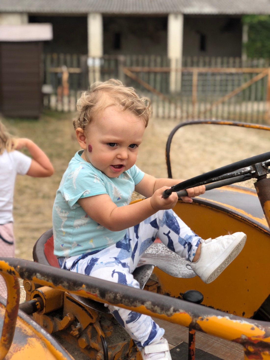 Sam är förresten ofta ett roligt sällskap i vagnen, han vinkar och ”pratar” mycket och får många leenden och vinkar tillbaka. Sjukt vig är han också den lilla spillevinken. Det här är liksom en helt avslappnad pose när han bara sitter och chillar lite.