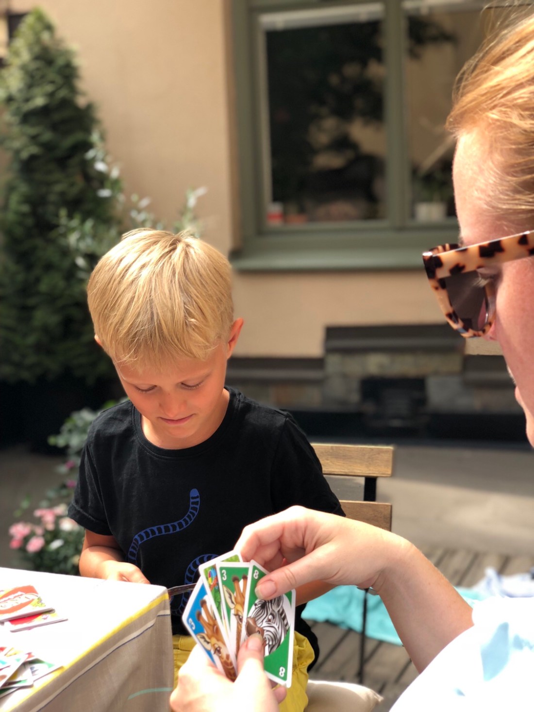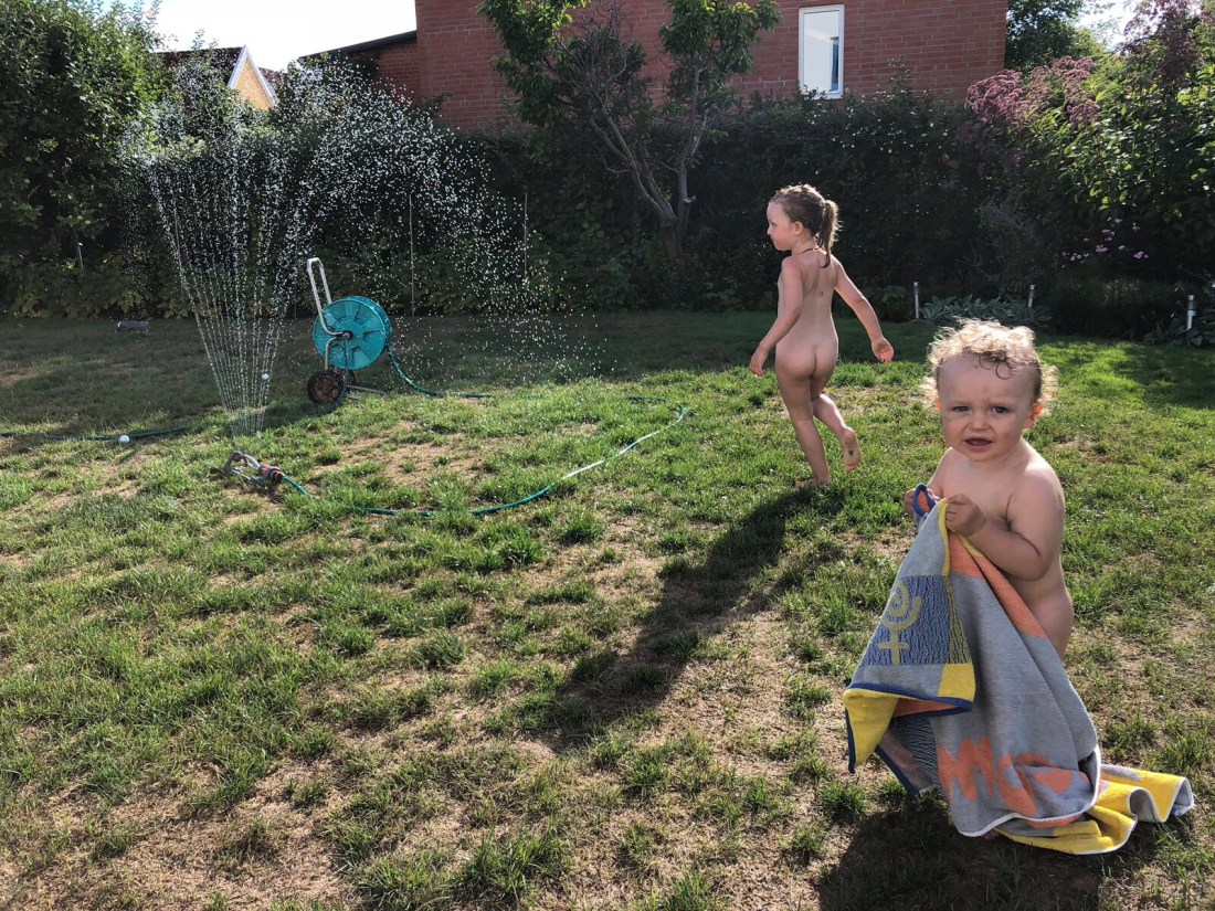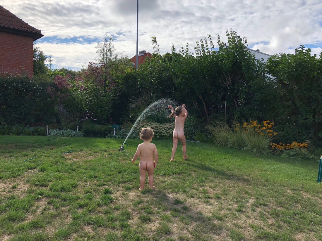 Väl hemma på Hallandsgatan blev det lite vila för undertecknad och bus i trädgården för barnen.