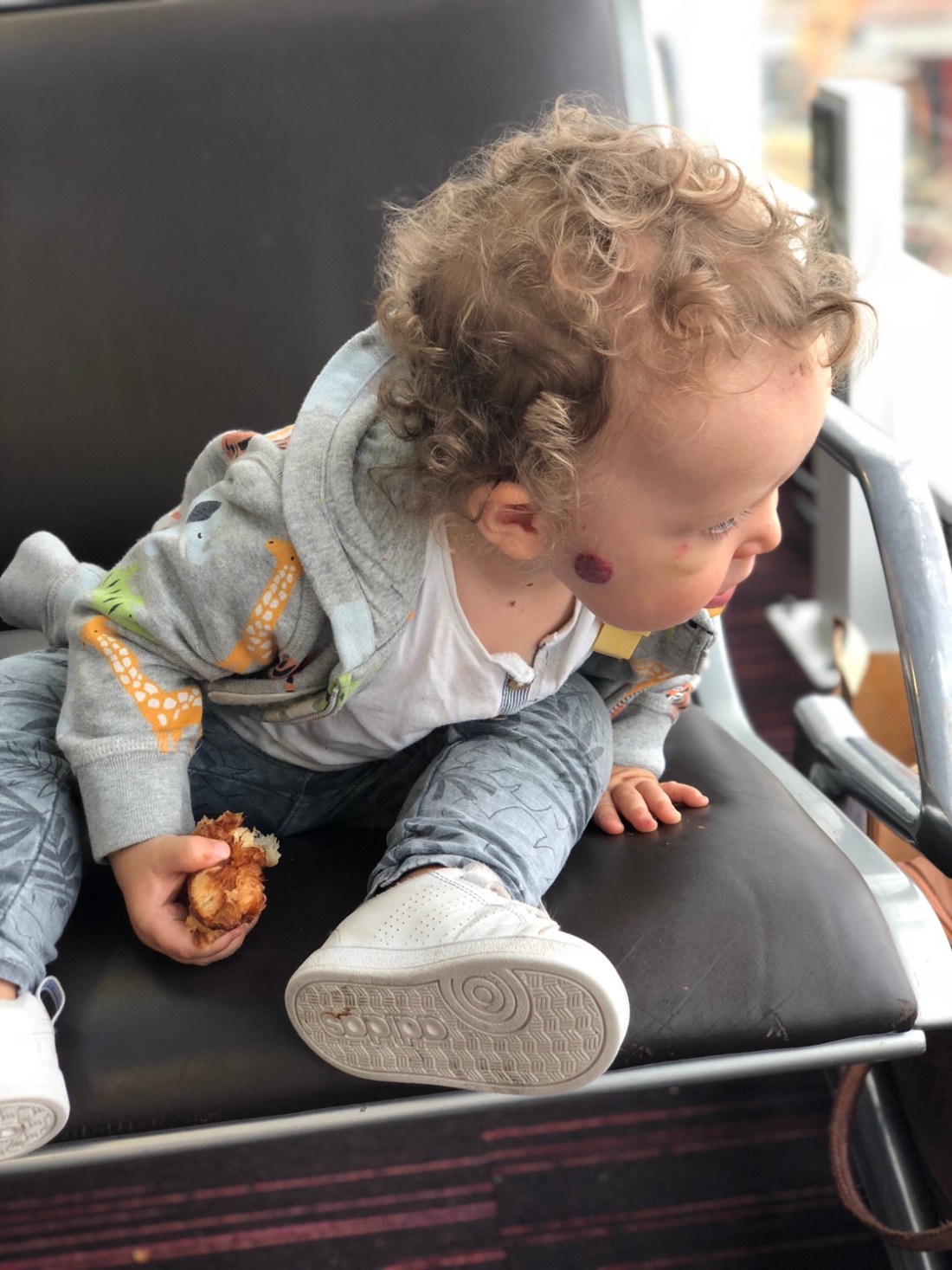 Igår morse packade vi in oss allihopa i en taxi och begav oss mot Charles de Gaulle för att flyga hem till Sverige. Vi blir fortfarande nästan chockade varje gång över vilken tråkig flygplats det är. Igår flög vi från 2D för första gången, och den var faktiskt t o m ett snäpp värre än 2F som man oftast flyger ifrån. Men nu var det ju morgon så att det fanns ett ”Paul” (cafékedja) räckte ändå långt. Sam kör sitt race, fram och tillbaka/upp och ner. Med en croissant i handen blev det hyfsat smuligt runt omkring oss. Något som terminalens småfåglar (!) tackade för🤣