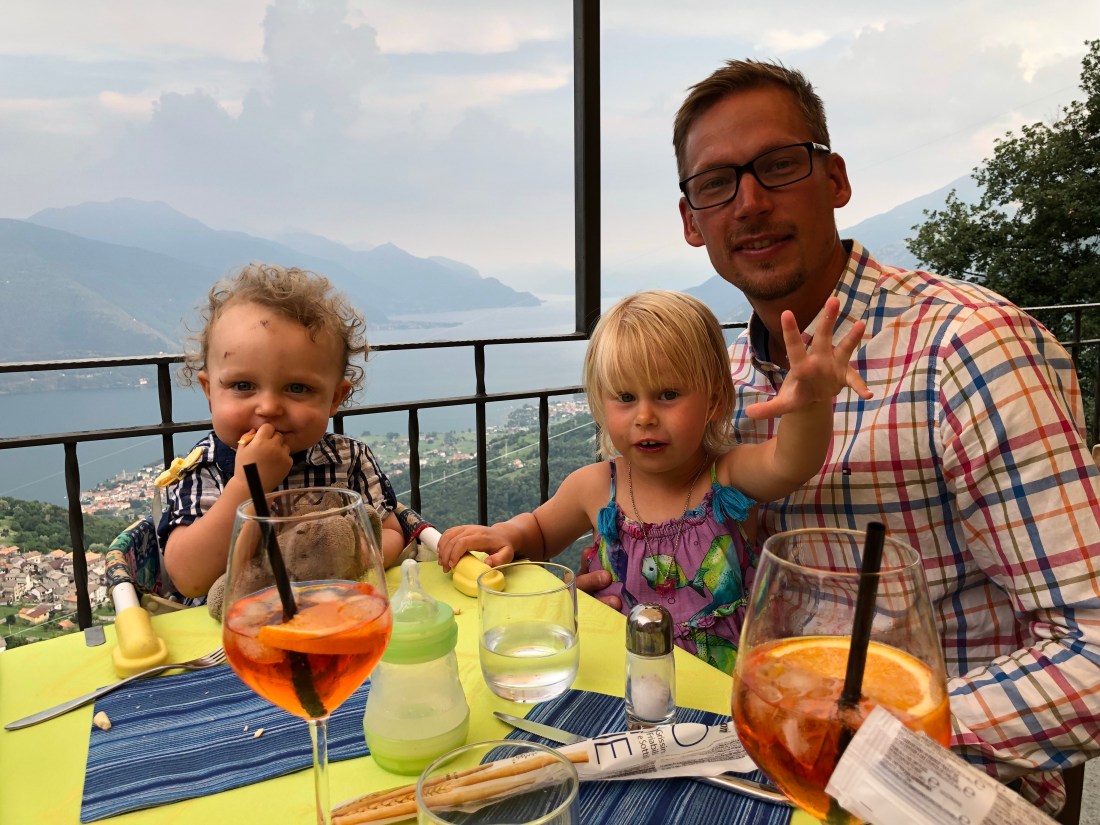 Men innan hemresan spenderades sista dagen runt Como i staden Menaggio på en beach club. Ganska skönt att ha restaurang, pool, toalett och att kunna låta Sam springa runt på gräs.