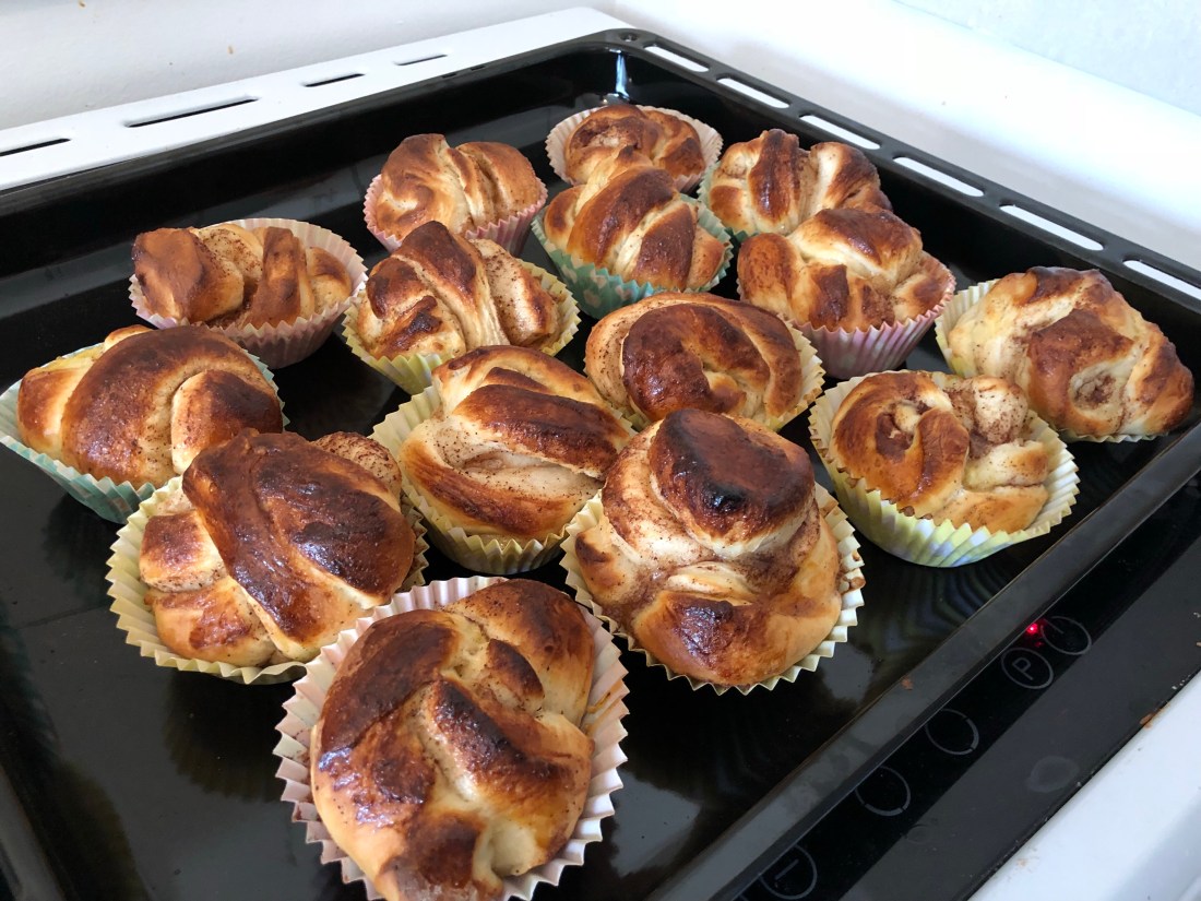 Ser inte mycket ut för världen men gjorde tricket👏🏻👏🏻👏🏻 fick ta lite på måfå, inte direkt exakta mått i den där påsen, och ingen våg har letats fram i flyttkartongerna ännu. Har också inhandlat nytt mjöl efter tips – Farine de blé T55. Finns alla möjliga varianter, T110, T65, T45… och sedan en del andra som heter annat än Farine de blé. Ingen aning om vad det är för skillnad🤷🏻♀️ Som gammal mjölförsäljerska vet jag företås att mjölet är väldigt viktigt för resultatet, men ibland vill man liksom bara ha ett vanligt hushållsmjöl. Men det här blev super, så nöjd💪🏻 så de här får Tomas ta med till jobbet imorgon för att bjuda på som svensk födelsedagsfika.