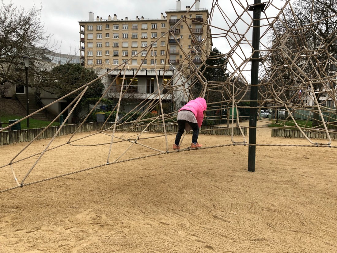 Och Lollo ville idag till den konstigaste lekplatsen vi har i närheten. Är liksom bara ett högt klätternät, format som ett torn. Och hon är lite för liten egentligen. Men hon kämpade på och är fast besluten att ta sig till toppen. Trillade ner en gång och fick ansiktet ner i sanden och slog sig lite. Var helt säker på att hon ville gå hem men hon bara borstade av sig försökte igen med förklaringen ”Jag är en bandyboll”☺️