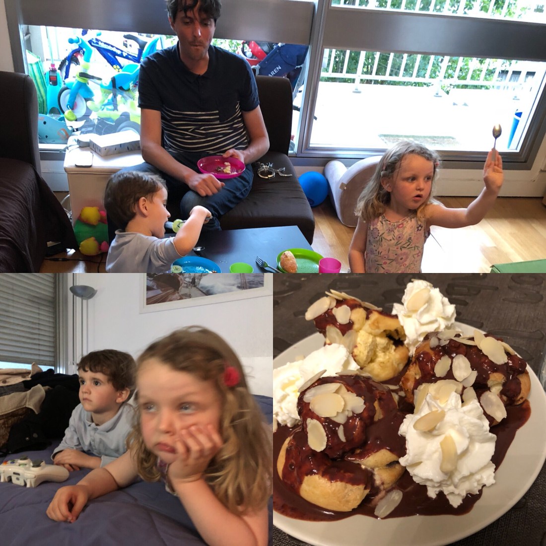 Och middag hos några grannar, Elodie och Maxim, i lördags. Tyvärr inga pangkort, men en desto trevligare kväll😄 Glada barn som lekte och supergod mat. Fondue till huvudrätt och innan dess en hel buffé med aperitifs. Bland annat serverades escargots (alltså sniglar). Den första att kasta sig över dem är 4-åriga Marceau. Franska barn och mat alltså👍🏻👍🏻👍🏻 sist men inte minst hemmagjorda profiteroles till efterrätt😋