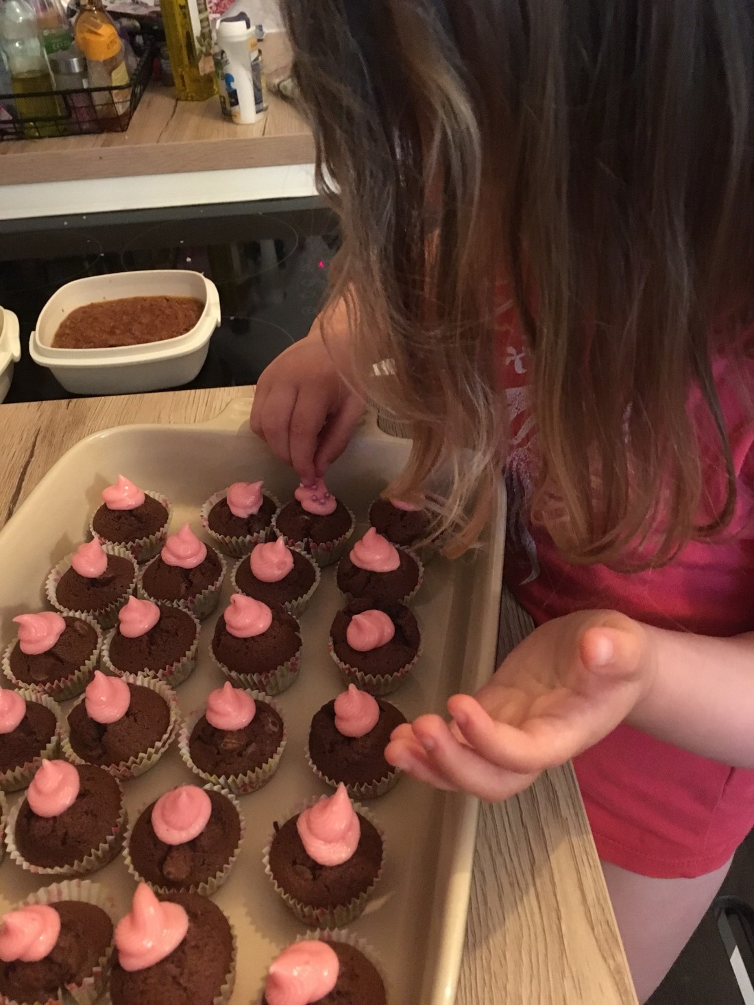 I måndags bjöd vi på minicupcakes eftersom Lollo fyllt år. Älskar verkligen att baka med Lollo, är så kul att göra något som vi båda gillar att göra. Och kul när hon är helt övertaggad över att få bjuda på något i klassen. Passade väldigt bra för det var hennes första riktiga dag, dvs 08.30-15.45. Det hade gått hur bra som helst så nu kommer det bli 2-3 långa dagar i veckan för att öka på franskan för hennes del. Känns som helt rätt att vi tagit det så lugnt och låtit henne känna in och lära sig långsamt. Varenda strössel placeras för hand😴