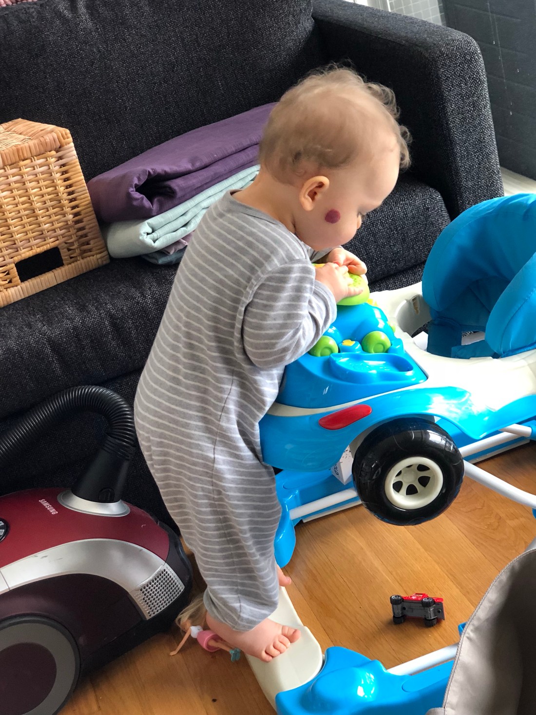 Sam älskar att ha sin syster hemma, och Lollo pendlar lite mellan 👍🏻👶🏻👎🏻 När det blir för mycket så går hon in på sitt rum och stänger dörren. Sam kämpar för att hinna ikapp men får sitta utanför och ”ropa”😭