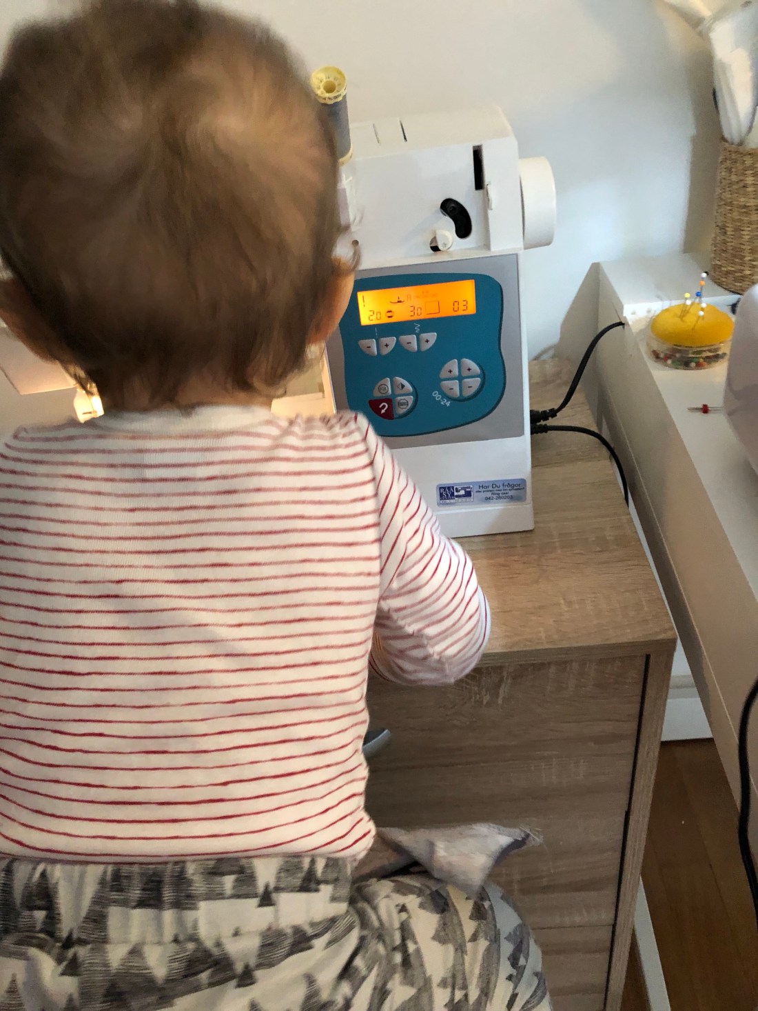 Men fick hänga lite med mig vid symaskinen istället, det var han ändå fascinerad av i några minuter👏🏻