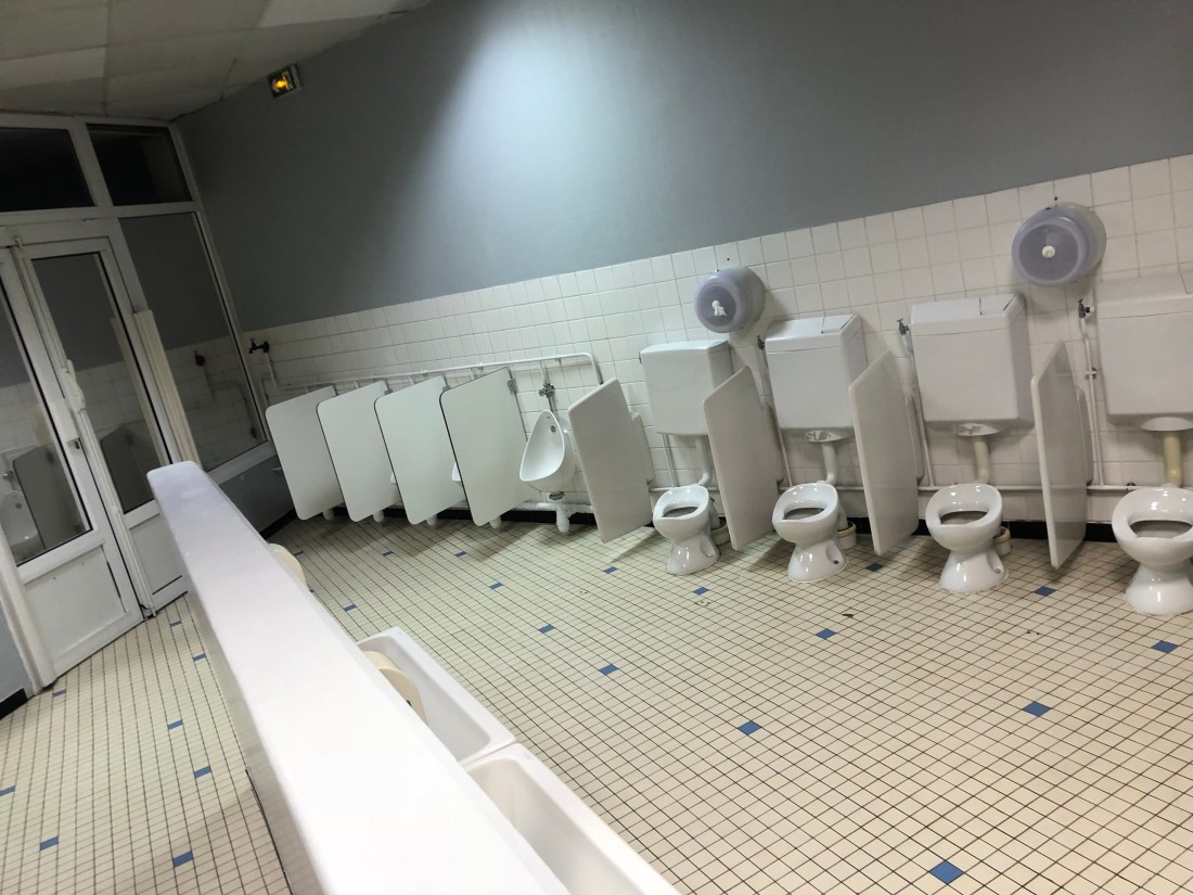 Så här ser toaletterna ut. Det här med personlig integritet är inget de övar på känns det som😬