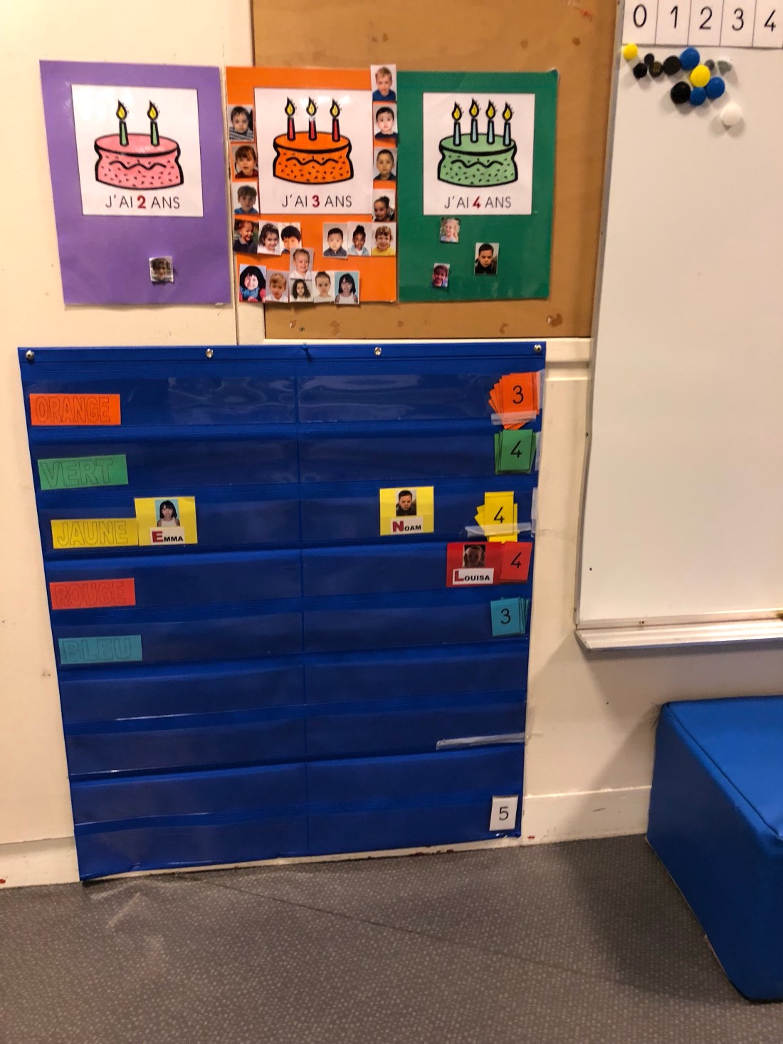 På mornarna går man och tar sin bild och sätter vid rätt färg på tavlan. I de här mindre grupperna gör man sedan olika saker tillsamman under dagen.