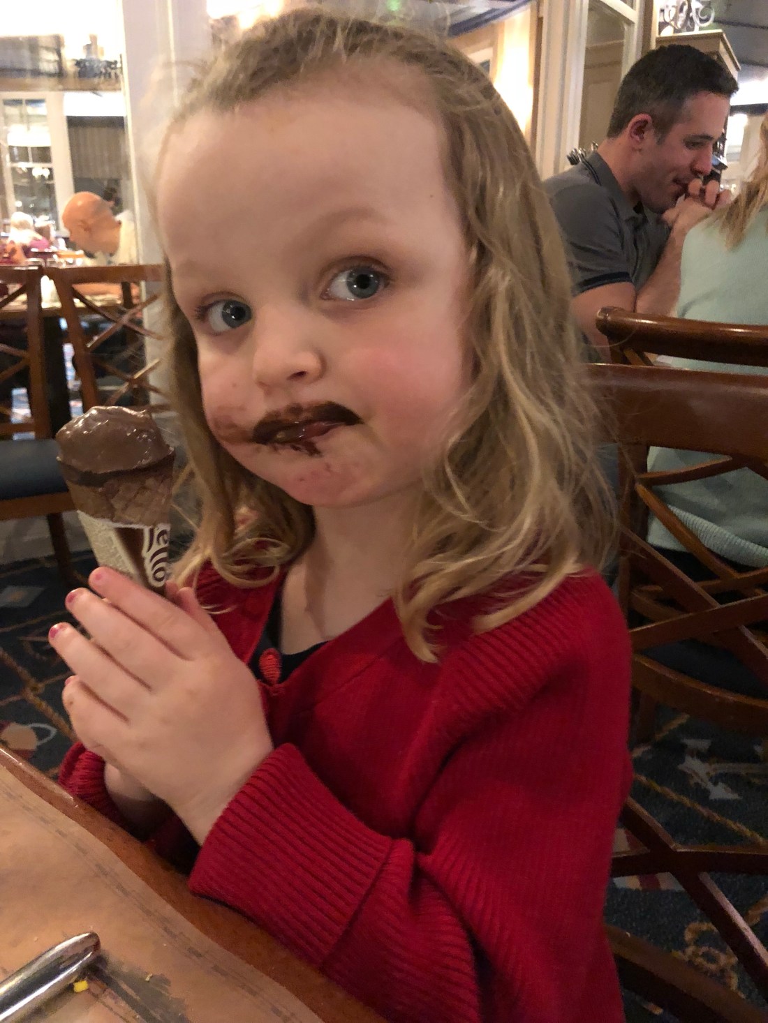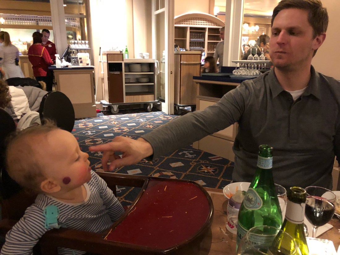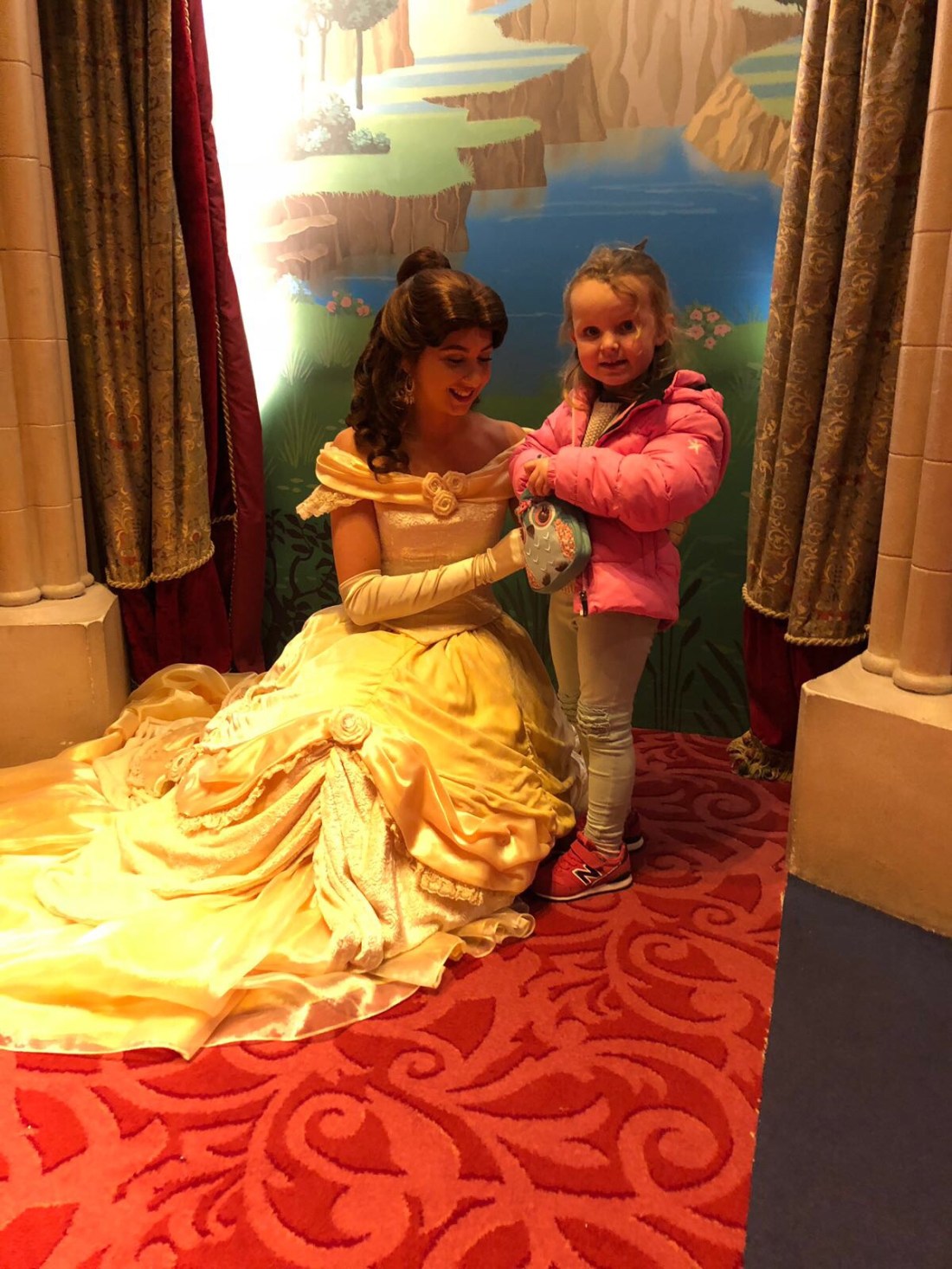 Det som inte fångats på bild är alla köerna😵⏱ Man vet ju att det ska vara kö, men det är ändå helt osannolikt ibland. För att komma in och få träffa en av prinsessorna är det t ex upp till 2h väntetid😱 hade ju blivit tokstressad om vi faktiskt var här för att åka en massa coola attraktioner eller om vi bara varit här en dag. Men detta blir vår resa den här semesterveckan så vi kör all-in med Disneyhotell och inträde till parkerna i 3 dgr. Hela upplägget är ändå väldigt trevligt och bra. Hotellet vi valt heter Newport Bay Club och det ligger perfekt 10 min promenad (men finns transfer om man vill) från parken. Finns också pool och restaurang här, med förvånansvärt god mat👌🏻👌🏻👌🏻 Ska tillägga att promenaden går genom Disney Village – shopping i alla dess former av Disneysaker. Det är det andra som bilderna inte visar – alla möjliga och omöjliga prylar med olika Disneyfigurer som man kan köpa, överallt i hela parken. Går nästan inte att undvika. Lovisa har gått runt med sin lilla handväska som innehåller ett gosedjur, en askungenfigur och så farfars julklappspeng. Den sistnämnda får hon själv bestämma över (med viss guidning😆) och idag fick hon välja något att köpa med hem som souvenir. Så nu ligger hon här och småsnarkar med händerna hårt runt ett blinkande Elsa-spö❄️🌟🙈 Skulle vi sätta betyg på parken så tror jag det blir 3/5 från mig och Tomas och 5/5 från Lollo…vilket ju gör det till 5/5 från oss också😊