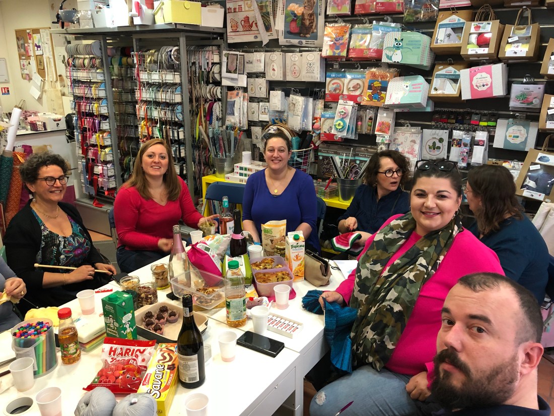 En liten kort notis om gårdagskvällen för min del också – soiree tricot. Eller stickkväll😊 Ungefär 10 glada pysslare som samlades i en butik, Happy Couture, en bit härifrån. Alla tog med sig något att äta och dricka och så satt vi och snackade och stickade i 2h. Känner mig väldigt hemma i den miljön så det är ett bra sätt för mig att träffa lite nya människor och öva franska Satt och lyssnade mycket, och förde en hel del små konversationer med mina grannar. Så en väldigt trevlig kväll🌟