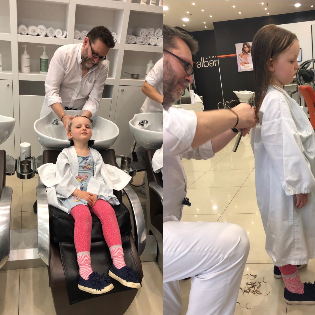 Jättegullig frisör som tog sig all tid i världen, först med hela schamponeringsgrejen där Lollo satt och njöt, och sedan med klippning och avslutningsvis styling❤️ Sam känns ju inte som om man någonsin kommer kunna klippa, de där lockarna är inte att leka med😅