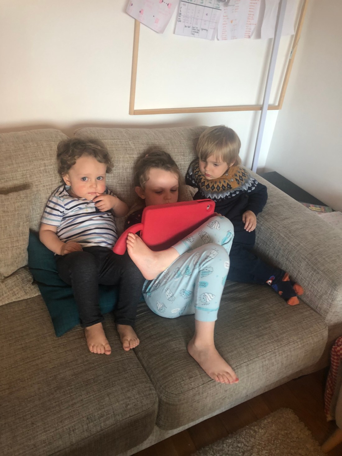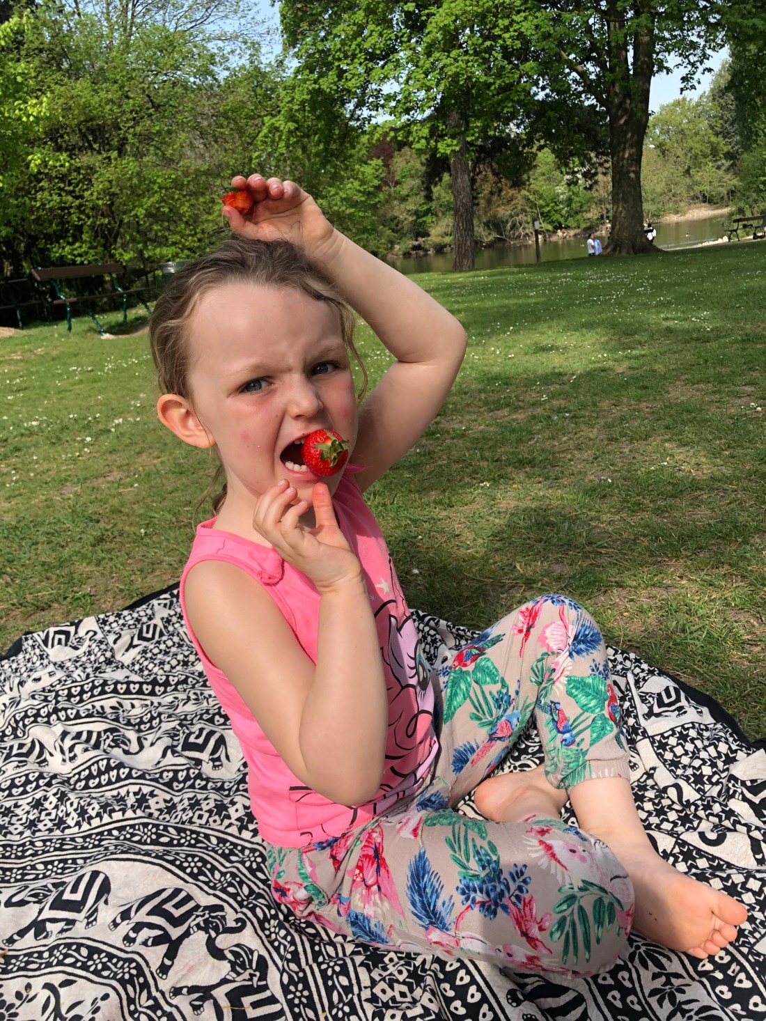 Detta ju ingenting egentligen, svensk och ”det finns inget dåligt väder bara dåliga kläder”-uppväxt som man är. Men man känner sig lite oförberedd😬 det är måste på mössor, vantar, någon varm väst under osv. Nu är ju knappt barnen utomhus i skola/dagis så man behöver inte oroa sig att de ska frysa under dagen. Men vi försöker ju vara ute lite varje dag, och framförallt onsdagarna när de är med mig hela dagen. Denna onsdag blev det en hel eftermiddag i parken – med picknick och leksällskap😊 och jag ÄLSKAR att man även behöver solglasögon många av dessa dagar😊😎 det är liksom mycket härligare ta på sig mössan då också.