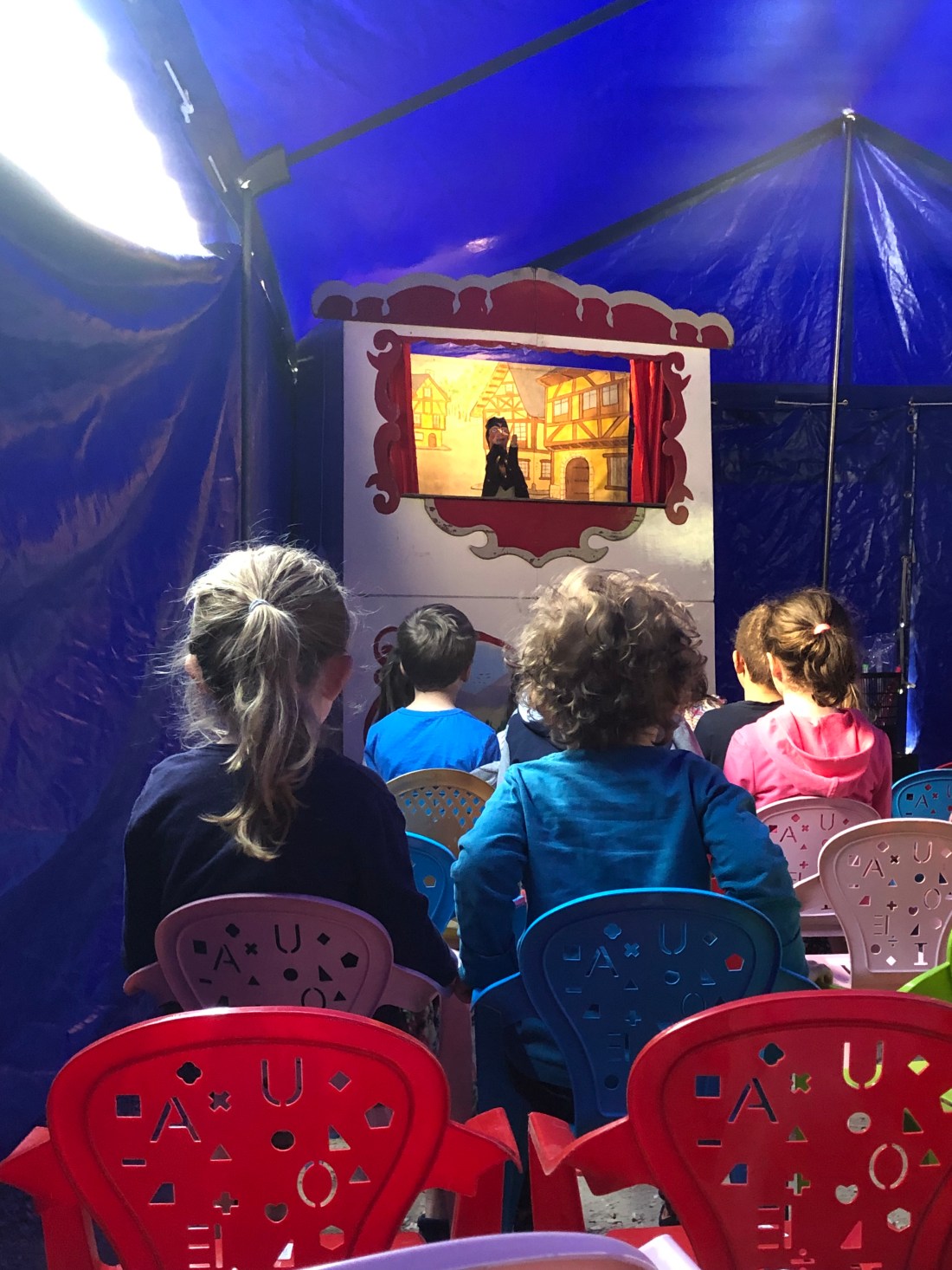 Lollo och Marta stod för huvuddelen av smetandet. Och bjöd sedan på dockteater, s k ”spectacle” på franska.