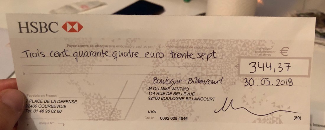 Man ska ju lära sig något nytt varje dag, och igår var det att skriva mitt livs första check✅ Lustigt nog var det två olika ställen vi behövde skriva ut checkar till, så mycket övning. Blev givetvis gooogling på det, ”how to write a cheque in FRANCE…” Typ så, och sedan ska man stava till siffrorna också😅 Hoppas det blev rätt😬