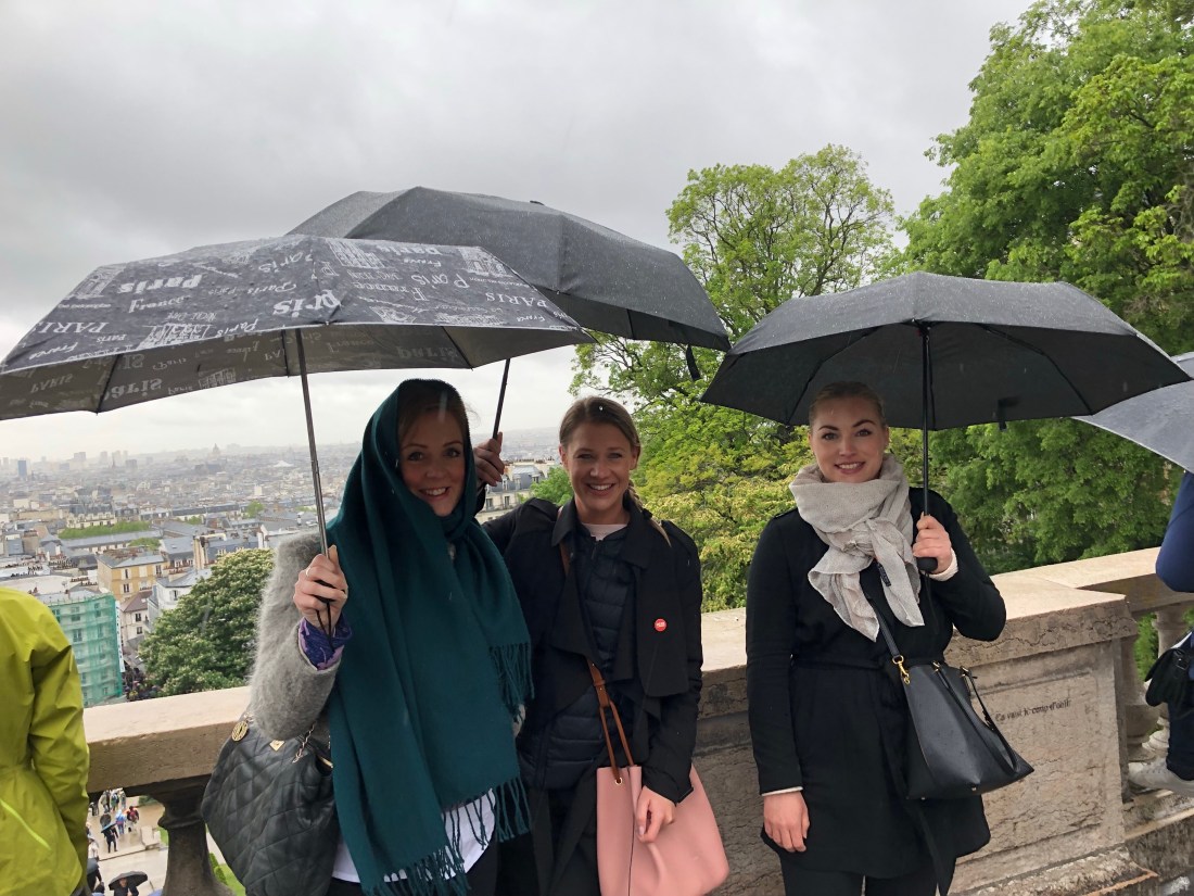 Måndagen spenderades med mer sightseeing i själva Paris. Tyvärr riktigt tråkigt väder med ösregn och 6 grader. En sån där dag man inte riktigt trodde skulle komma igen, efter en period med mycket sol och över 20 grader för det mesta😬 Men det blir alltid precis så roligt man gör sig och med rätt sällskap blev det såklart en pangdag ändå. Vi inledde med den fantastiska utsikten uppifrån Sacre coeur och lite strosande runt Montmartres gator.